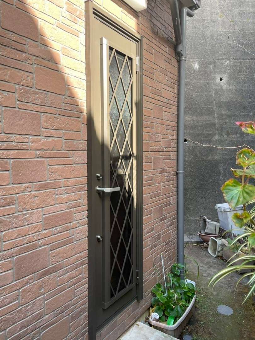 既存の枠は残した状態のまま、カバー工事でリクシルリシェント勝手口ドアに交換いたしました。